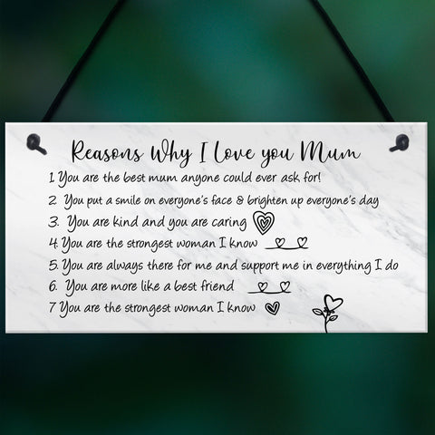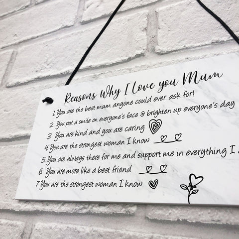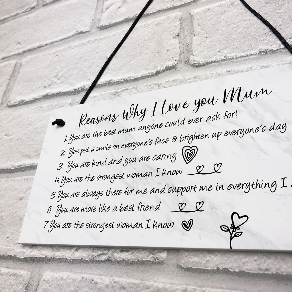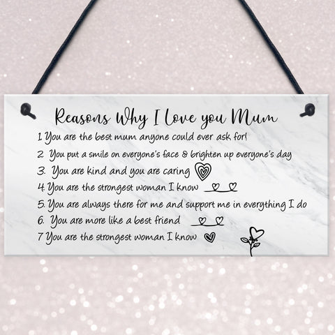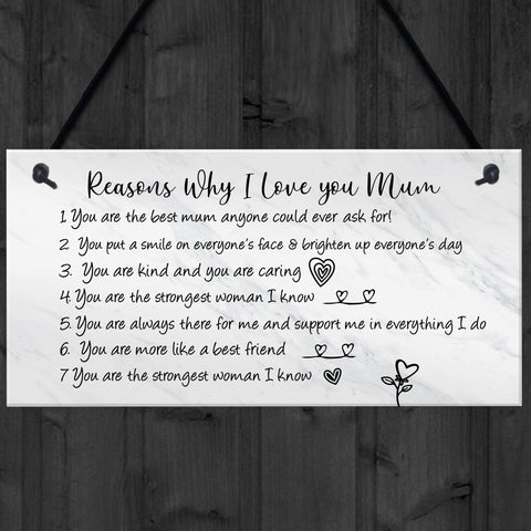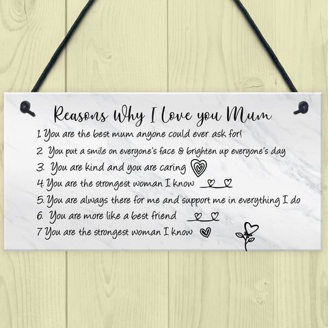 Reasons Why I Love Mum Birthday Christmas Gift Plaque Mum Gift