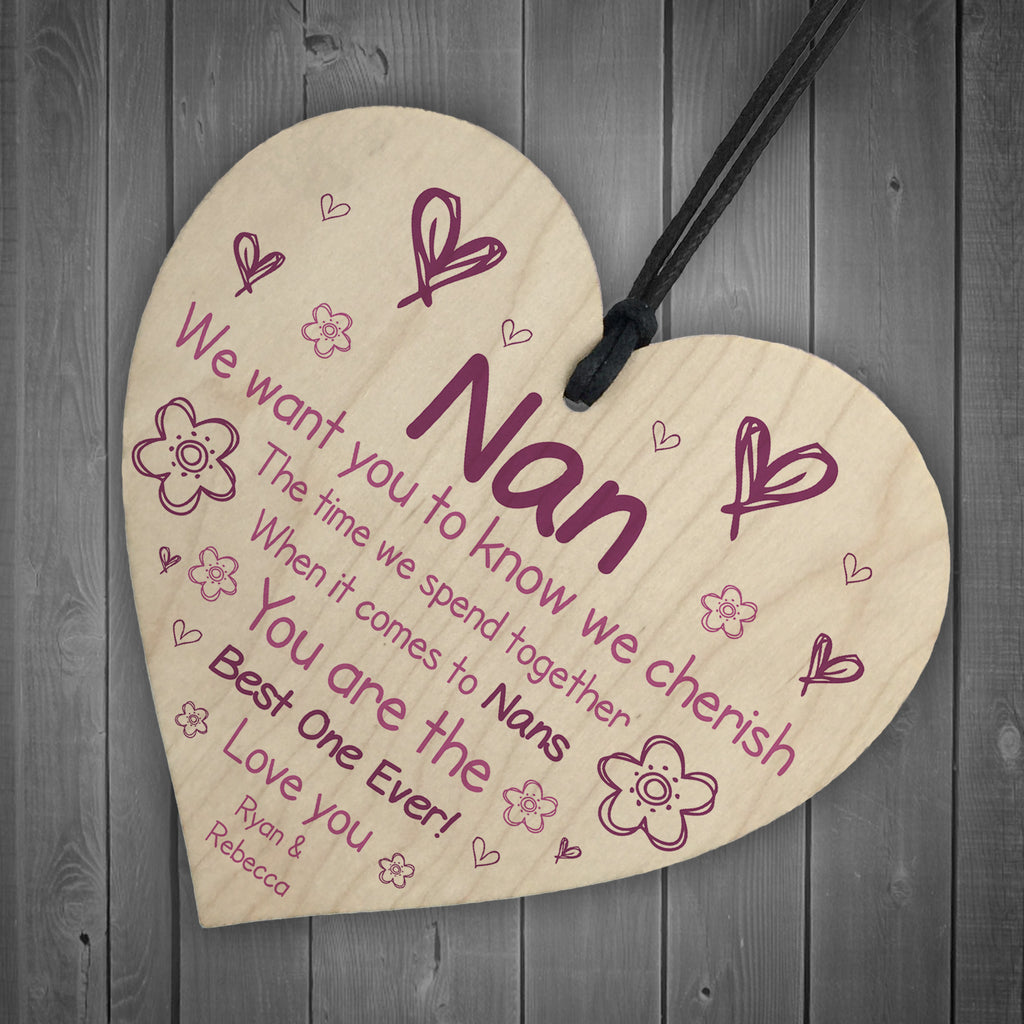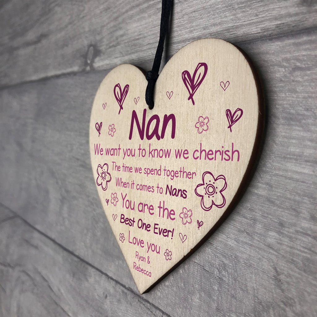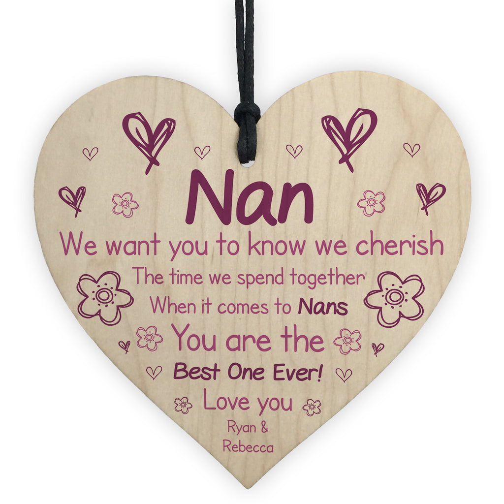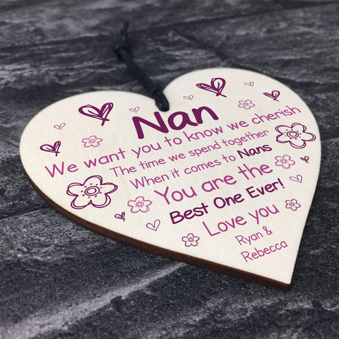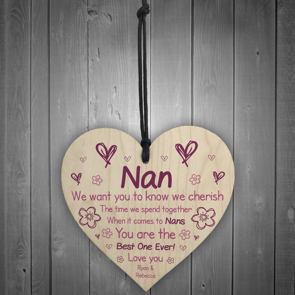 A beautifully personalised wooden heart plaque printed with a heartfelt message to